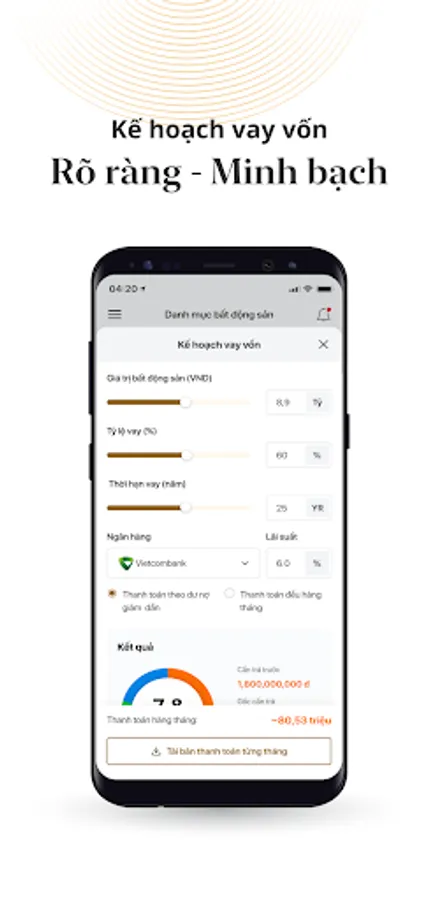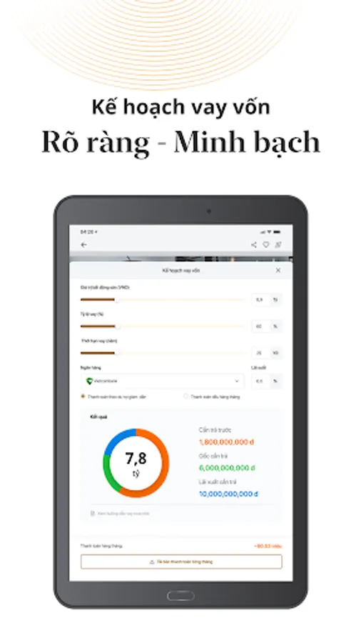 - Use loan calculation tools based on loan period, interest rate, and limit to make appropriate financial projections.