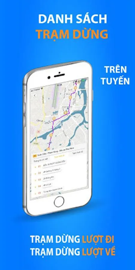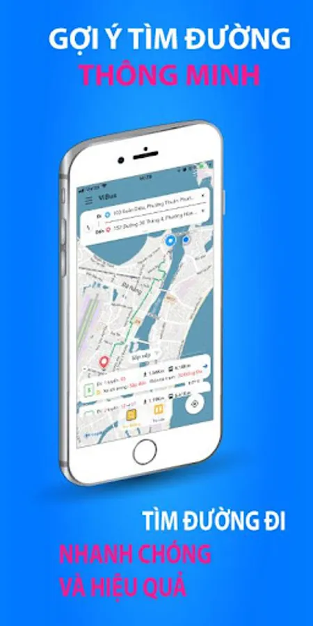 - Chỉ đường thông minh: tìm đường đi nhanh chóng, hiệu quả; hiển thị khoảng cách, thời gian xe buýt tới trạm lên.