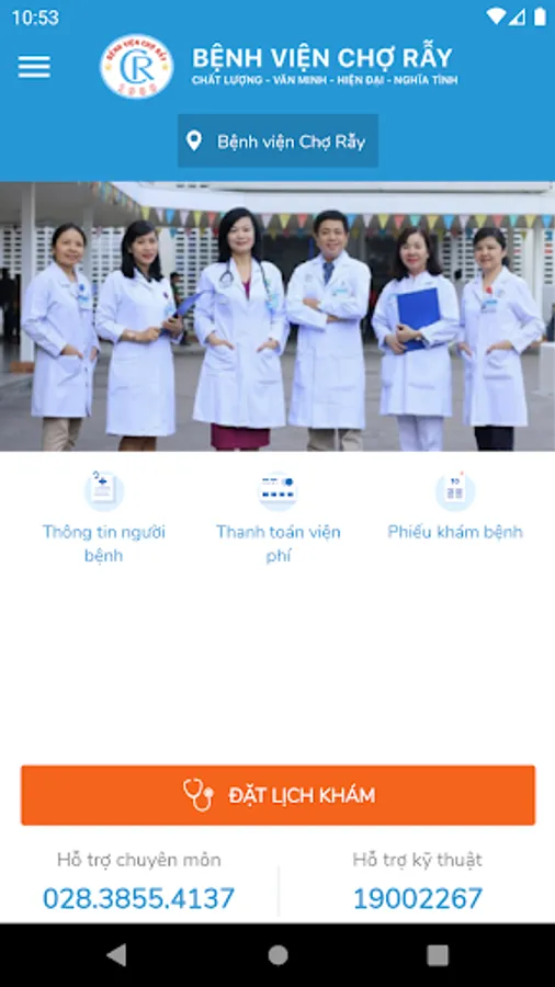 With Cho Ray application - Registering Medical Exam Online, we hope to help patients register for medical care more easily, quickly and conveniently. Thereby eliminating the difficulties and inconveniences of the patient in registering for examination, reducing the hospital overload, improving service quality, increasing patient satisfaction index, contributing to the development of developing a hospital to become the leading modern smart hospital in the country.
