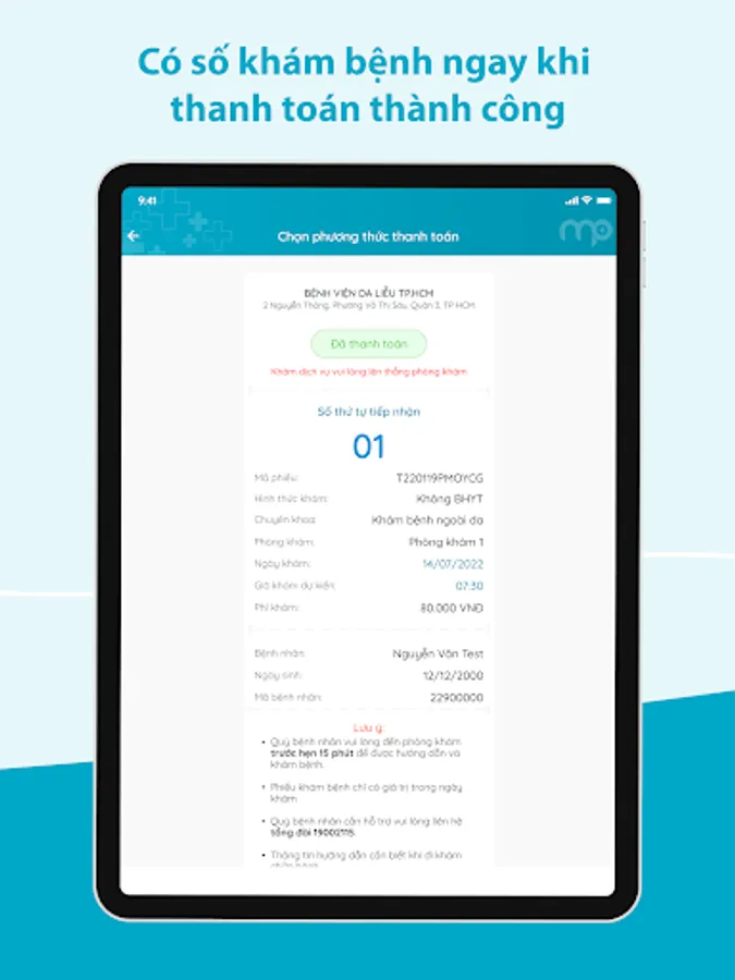 The online medical examination booking application at Ho Chi Minh City Dermatology Hospital helps patients to book online medical appointments, manage patient records, etc., saving time in medical examination and treatment, no longer having to queue. queue and wait when you get to the hospital.