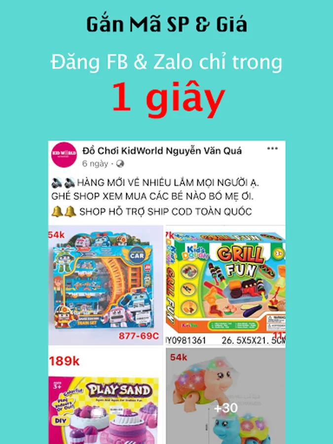 + Post photos in bulk with price and product code quickly.
