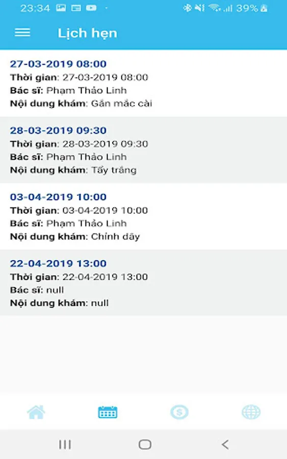 Ứng dụng cho phép bệnh nhân đặt lịch khám với bác sĩ và theo dõi lịch trình khám, nhận xét cũng như kết quả khám gồm kết luận cùng những hình ảnh về quá trình điều trị của bệnh nhân.