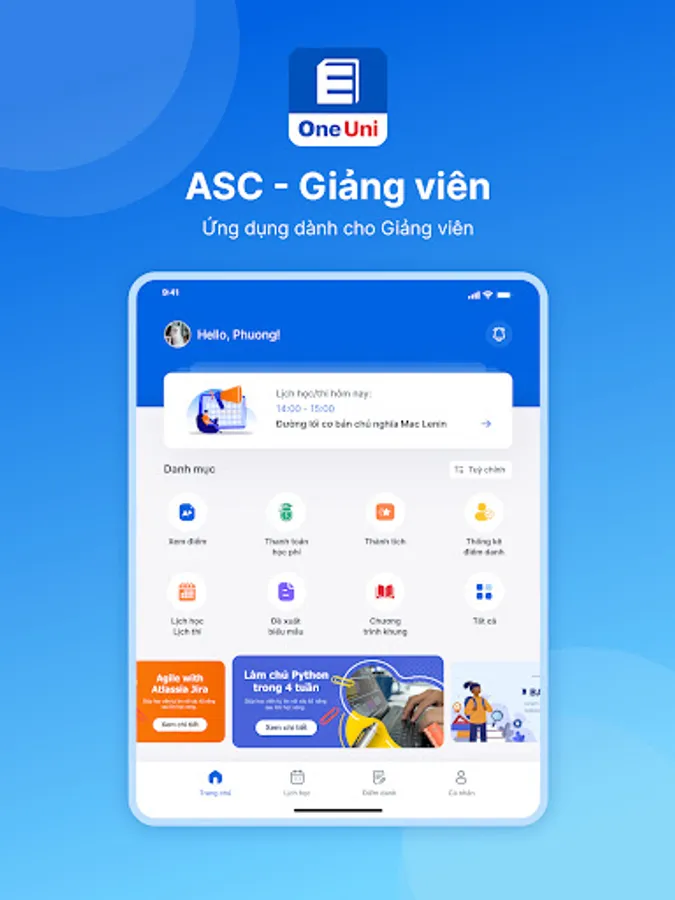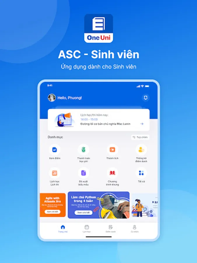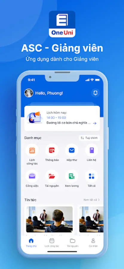 OneUni is an educational technology application that provides useful information anytime, anywhere for students, teachers, and parents to improve the interaction between learners and the school. With the following services: