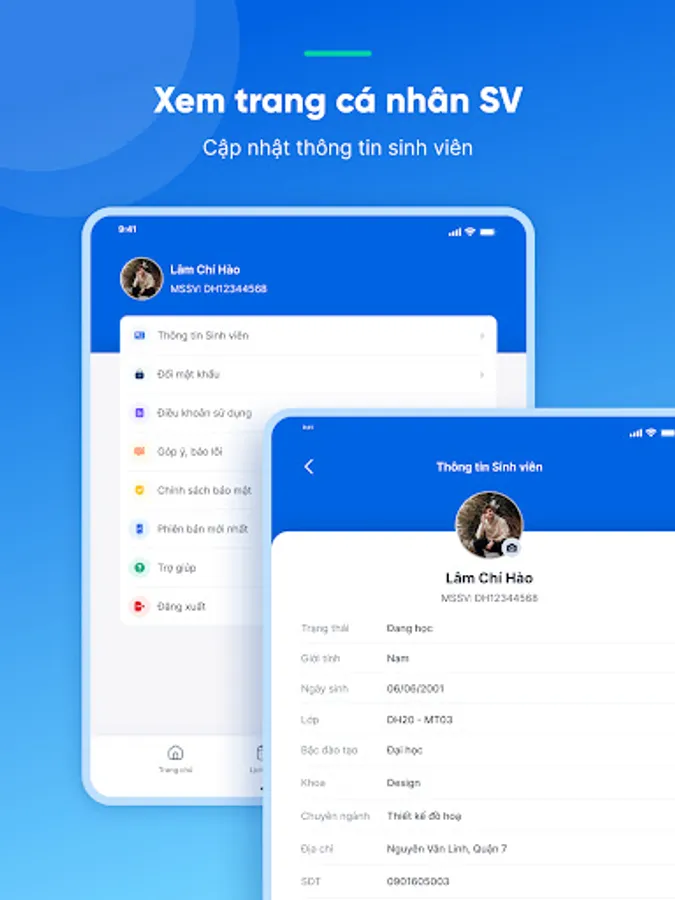 • Student profile information