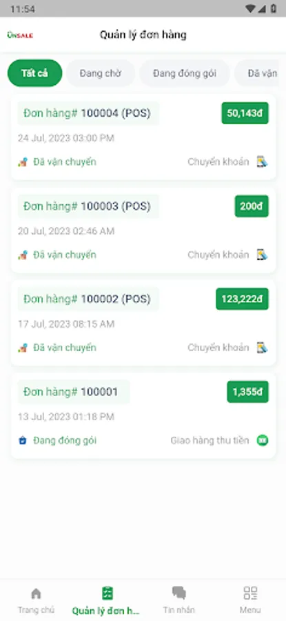 - OnSale integrates order synchronization between the software with Website and Fanpage channels, and OnSale sales management software also integrates shipping units, helping shop owners manage order status more quickly.