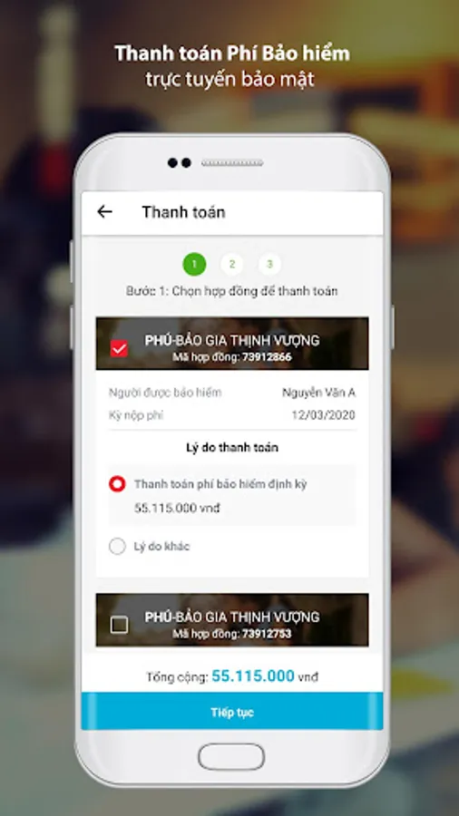 + Fast and secure online premium payment for one or more contracts at the same time