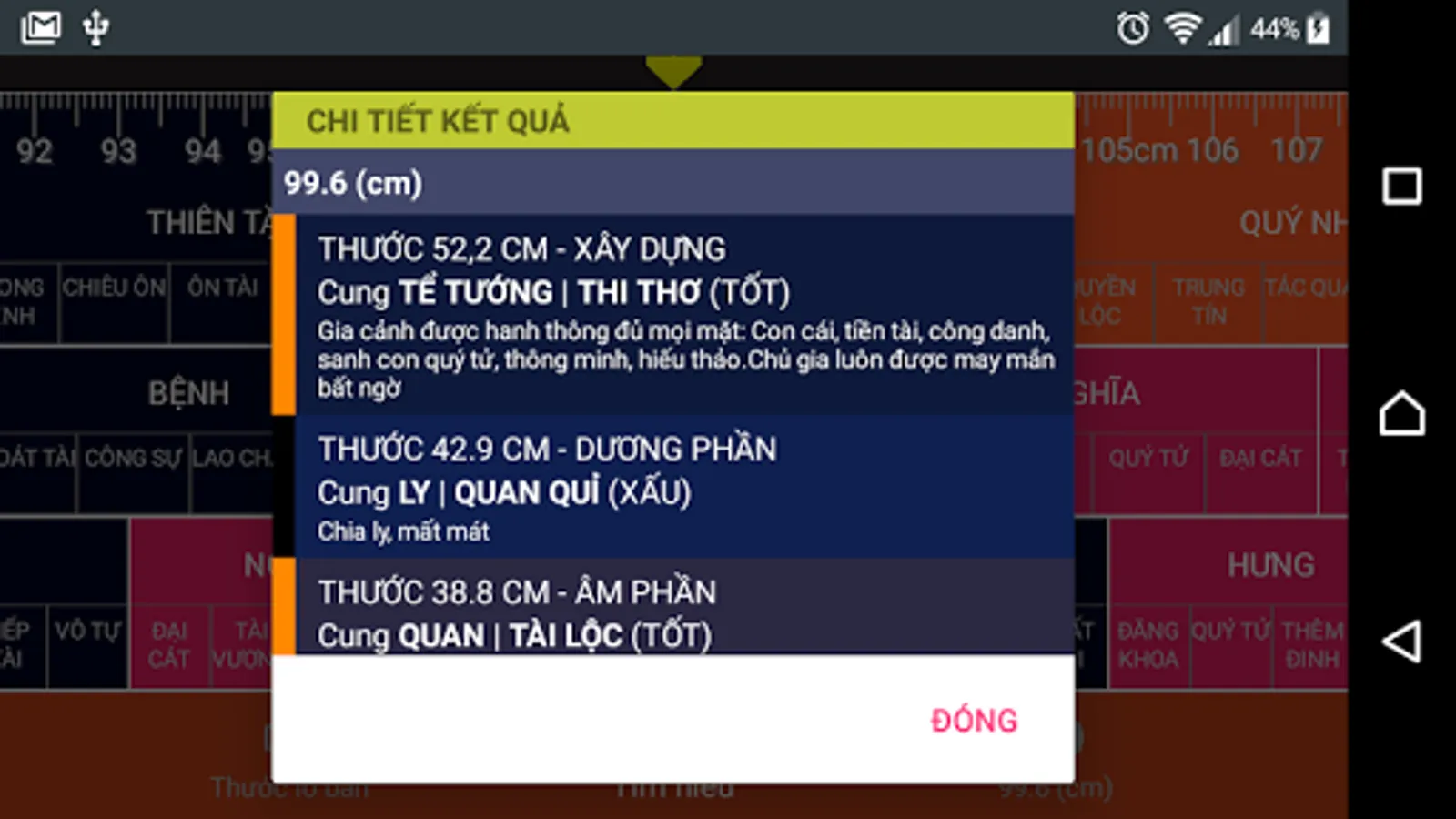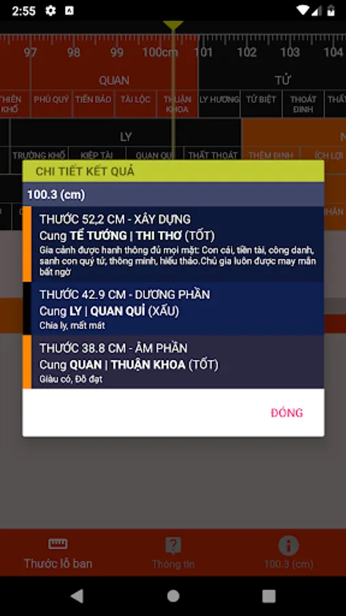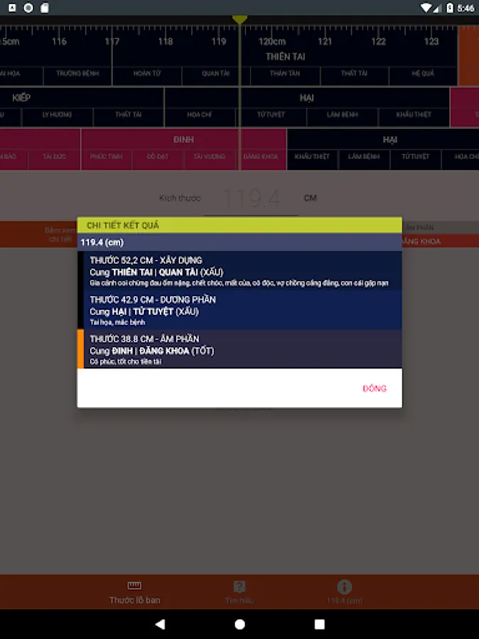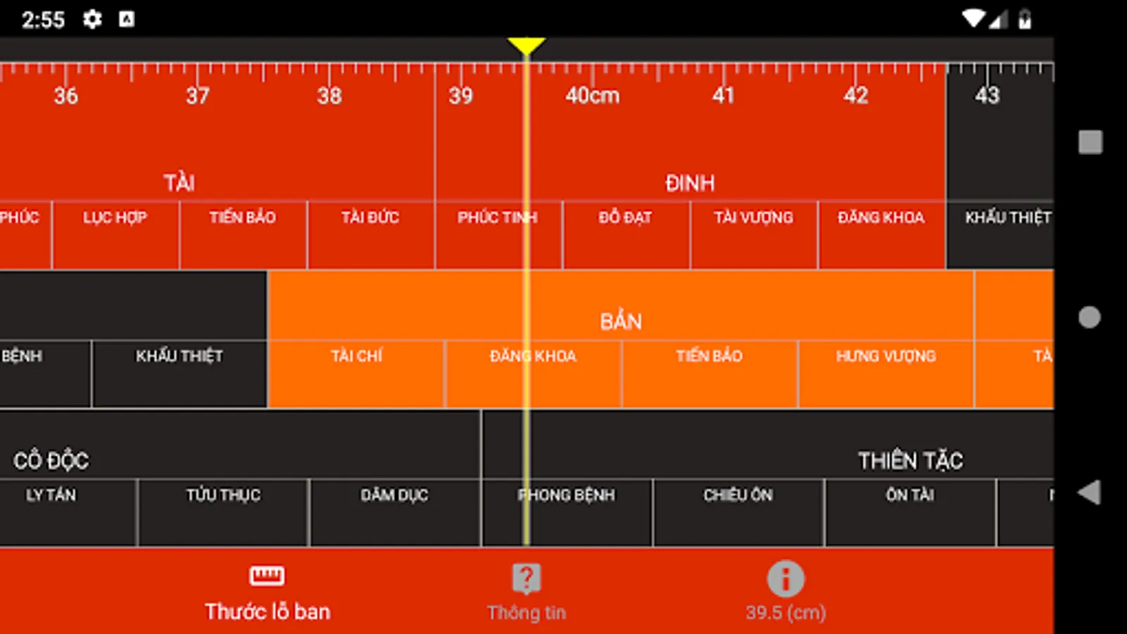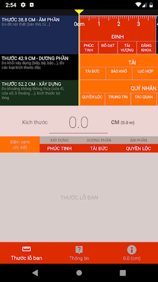 Lu Ban Ruler app to help you pick out a good size for interior furnishings, construction size as check size bed, wardrobe, the altar, the size of doors, windows ... The app has a intuitive and fast for full information about the nature of good and bad according to the different size categories.