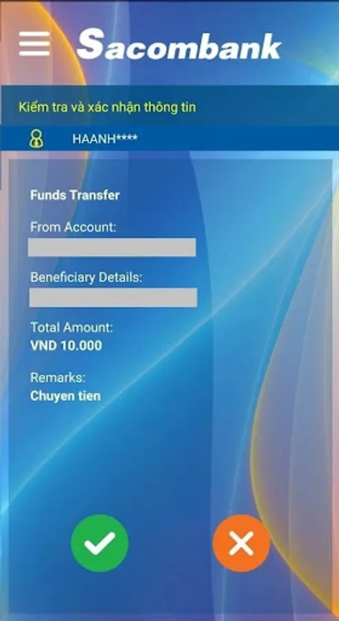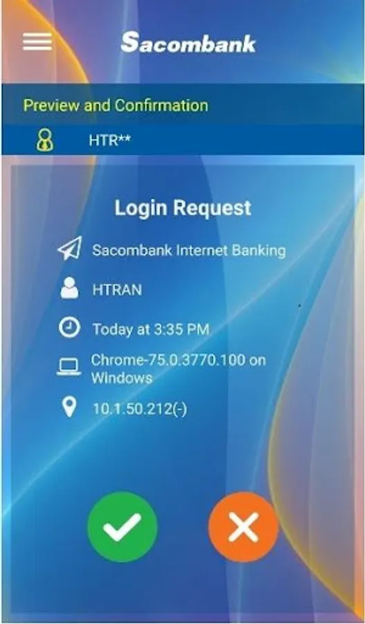 • Approve your Sacombank ebanking’s transactions (mConnected mode)