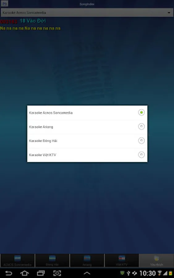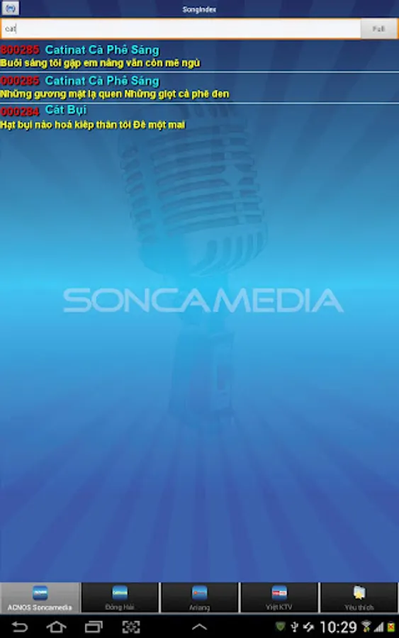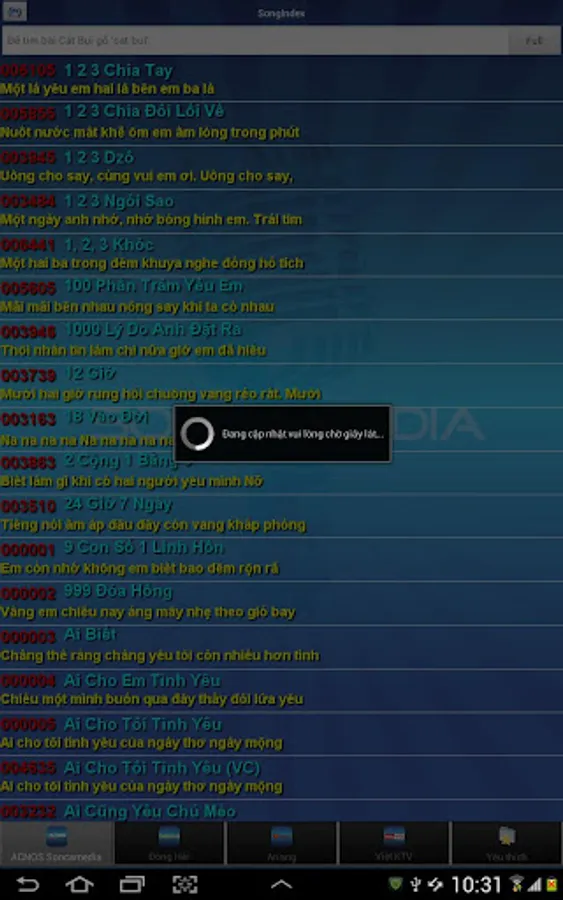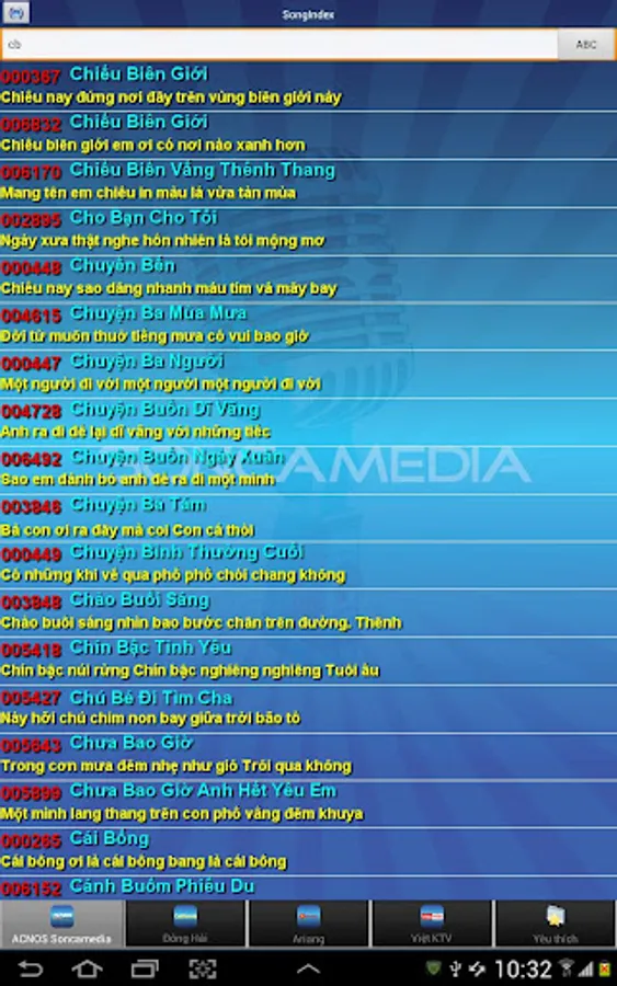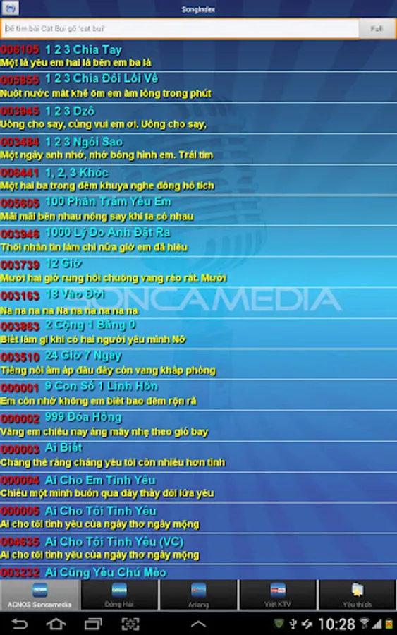 Ứng dụng tìm kiếm bài hát tiện lợi cho các các loại đầu máy Karaoke: Sơn Ca Media, Arirang, Đông Hải, Việt KTV.