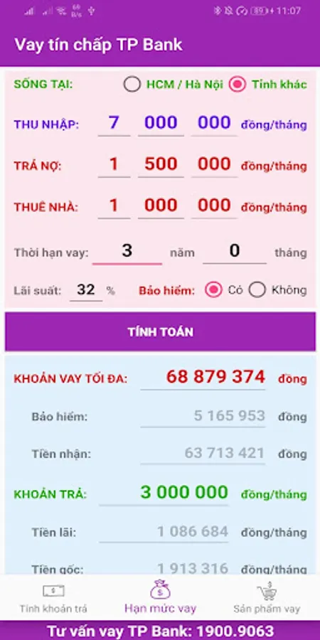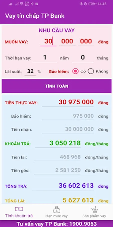 CREDIT LENDING MACHINE TPB is a tool to help people who are in need of credit loans (without collateral) at TP bank to calculate the monthly payment and the amount of interest arising for the desired loan, to thereby deciding whether to accept the interest rate offered by the CI.