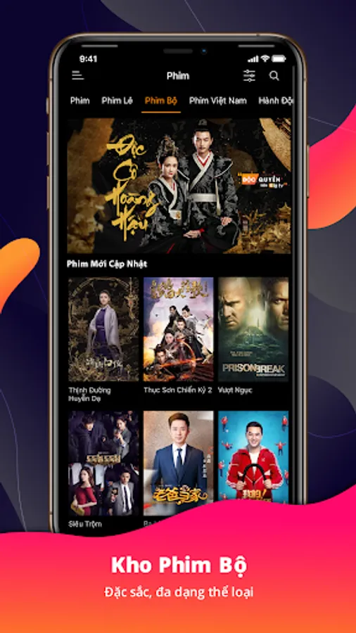 - 30.000+ giờ phim bom tấn, Hollywood, phim Âu Mỹ, Châu Á, Hàn Quốc, Trung Quốc, phim Việt chiếu rạp, phim bộ, phim lẻ thuộc 18 thể loại hành động, tâm lý, hài hước, võ thuật, hoạt hình, phiêu lưu, viễn tưởng, thần thoại, cổ trang, kinh dị, hình sự, chiến tranh, ca nhạc, gia đình…