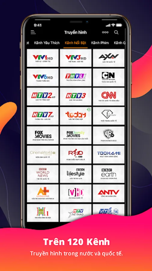 - 100+ kênh truyền hình trong nước (VTV, HTV, HTVC, VTC, Hà Nội, Vĩnh Long - THVL, Let’s Việt, Today TV, Yeah 1!, kênh đại phương…) và kênh quốc tế (Fox, AXN, Warner TV, Red by HBO, CN, Fashion TV, CNN, BBC, Bloomberg, Cinema World, Toonami, Paramount, DW…)