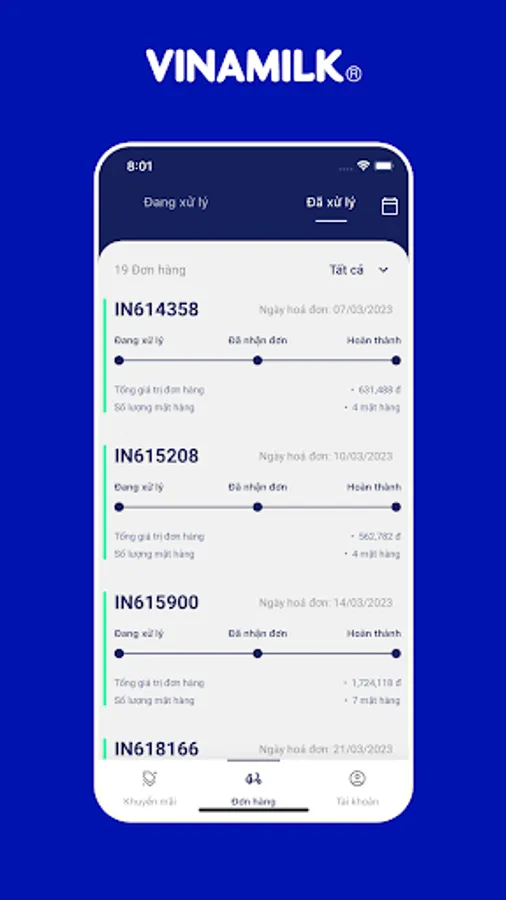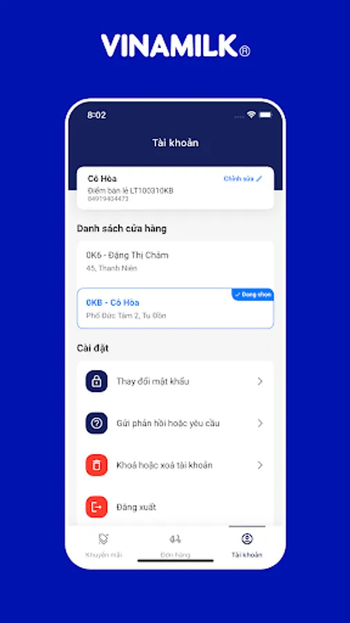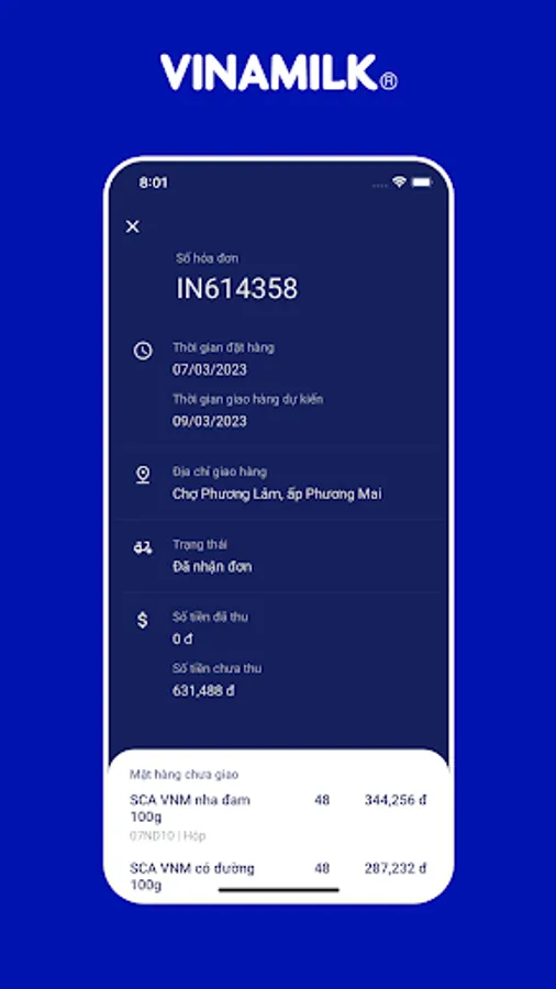 Vinamilk B2B application for order management and delivery of Vinamilk.