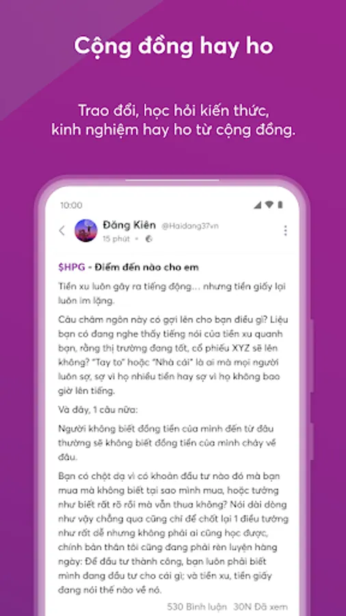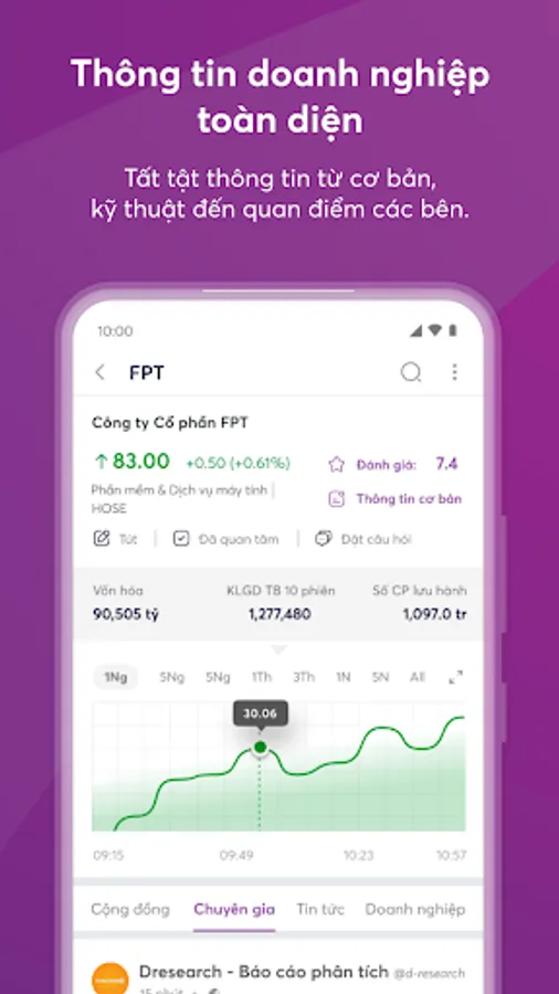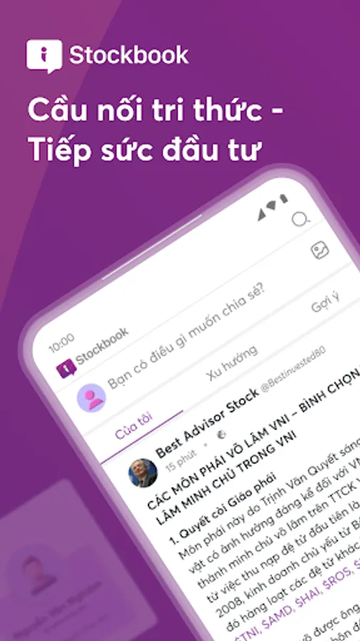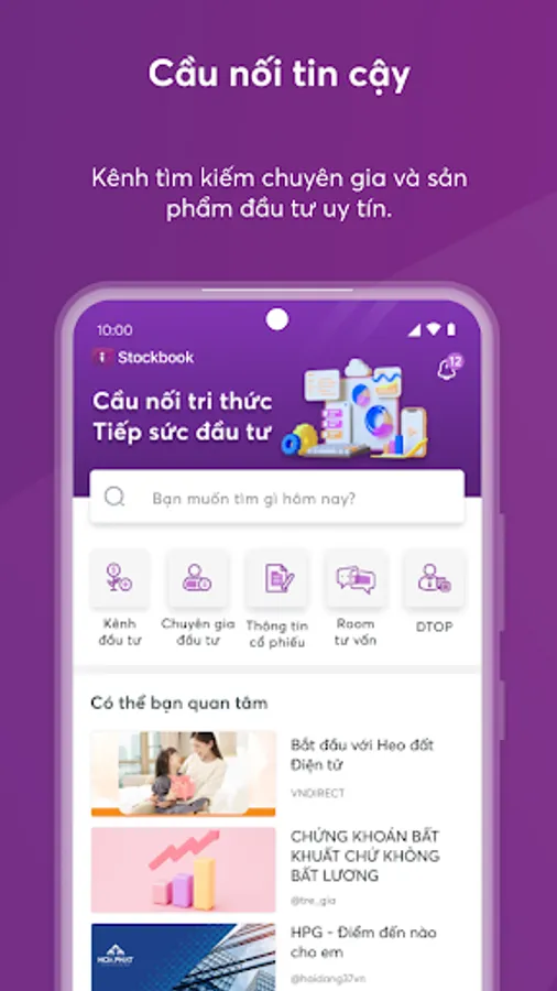Stockbook helps you connect quickly, transparently with information, products and investment experts in the market. You will easily grasp how the market is trending, what stories are being talked about the most, and how the code you are interested in is evaluated by experts.