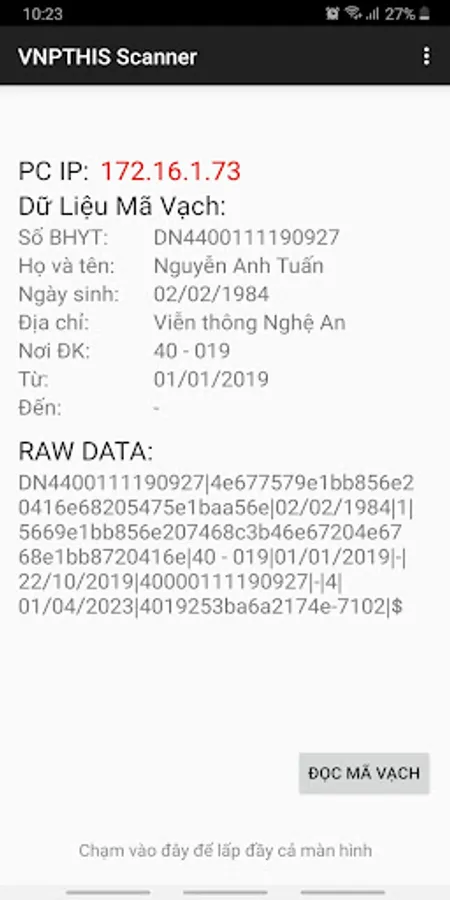 Use with Google Extension Read bar code BHYT (VNPT HIS):