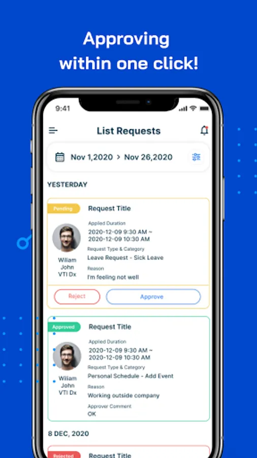 For managers, you can easily manage your team by managing schedule and approving annual leave, overtime or work from home within one click.