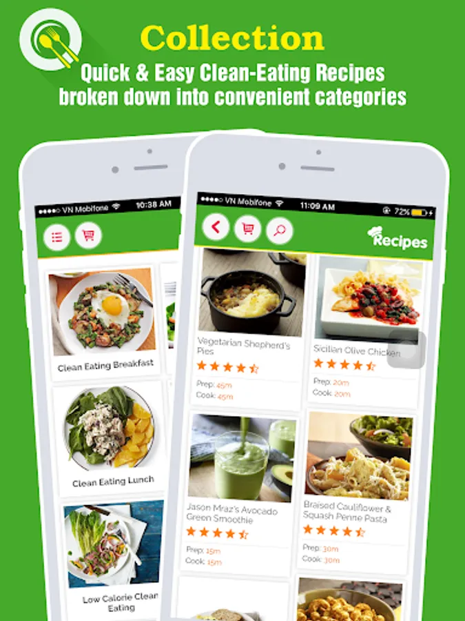 All recipes are presented in the application with more detail about ingredients and directions. This app makes for an easy, yet healthy way to cook for two or more people. With this robust and enlightening clean eating recipes app, not only will you find thousands of tasty clean eating recipes, but you'll also find many recipes broken down into convenient categories according to they type of dish it is.