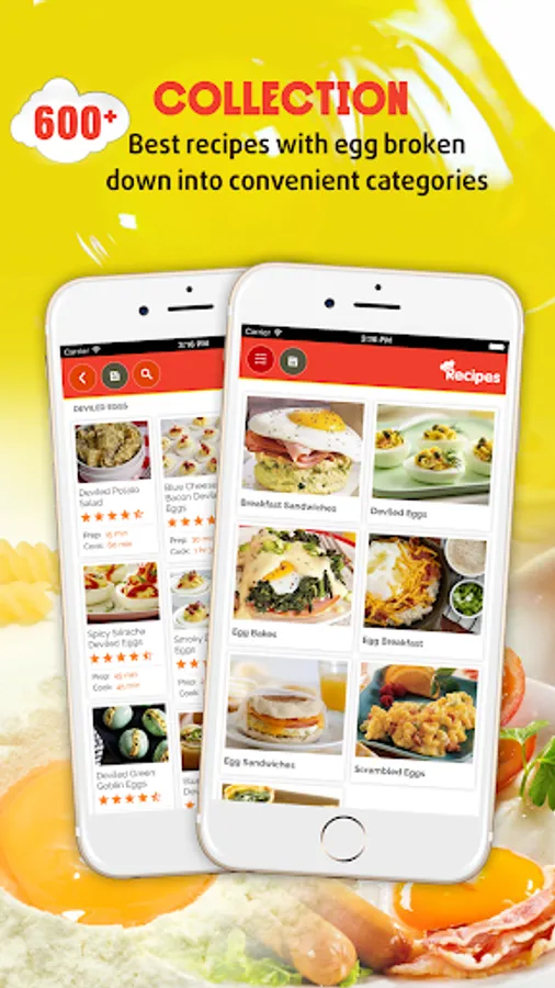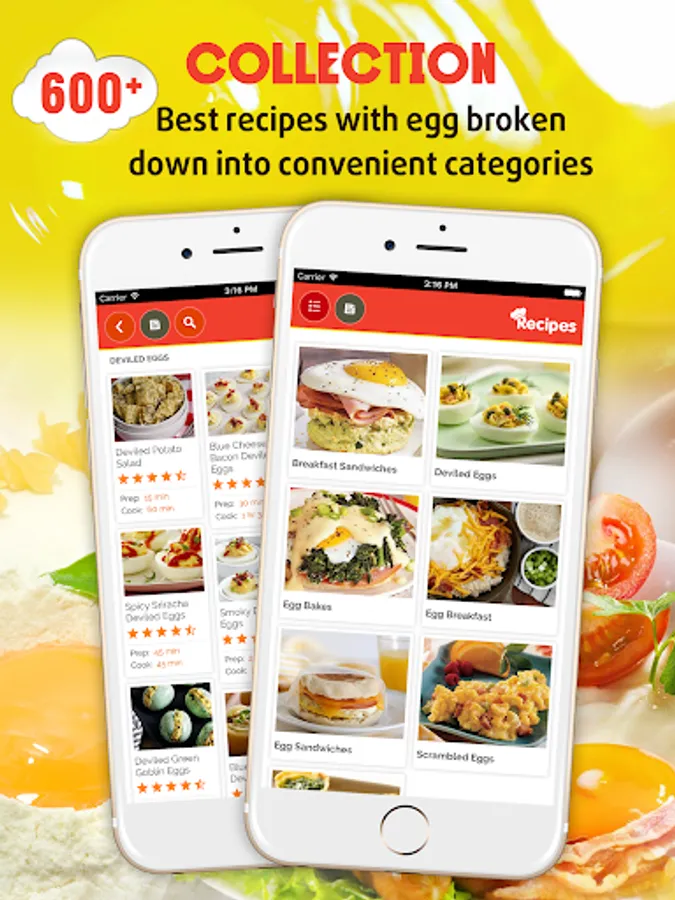 All recipes are presented in the application with more detail about ingredients and directions. This app makes for an easy, yet healthy way to cook for two or more people. With this robust and enlightening Egg Recipes app, Not only will you find over 600+ delicious recipes with eggs, but you'll also find many recipes broken down into convenient categories according to they type of dish it is.