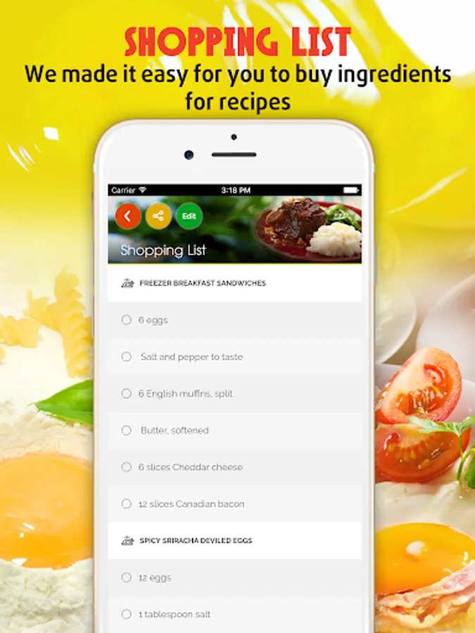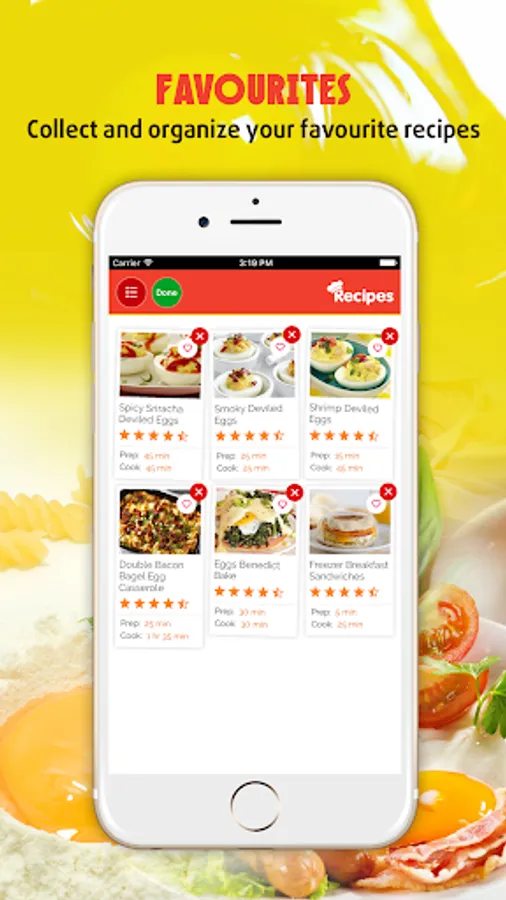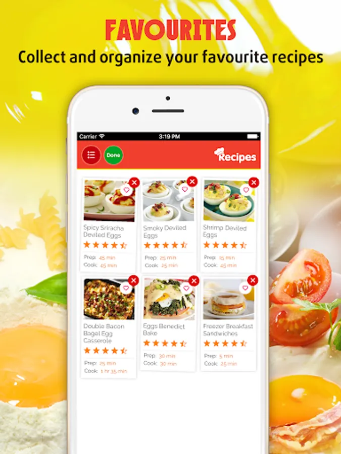 Now you can save a lot of time and effort and find that perfect recipe with egg you're looking for! No more need to flip through dozens of cookbook or magazine pages. Everything you need is right here in this app.