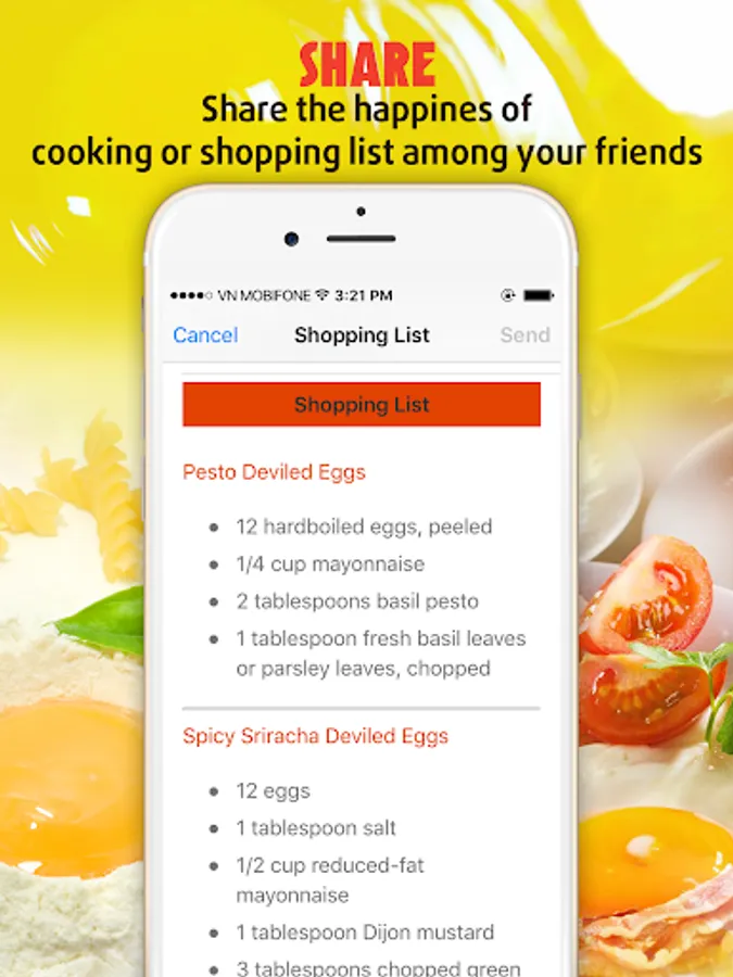 - Share your favorite recipe or shopping list with your friend very easy.