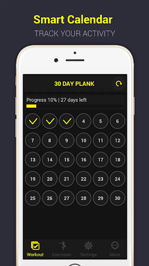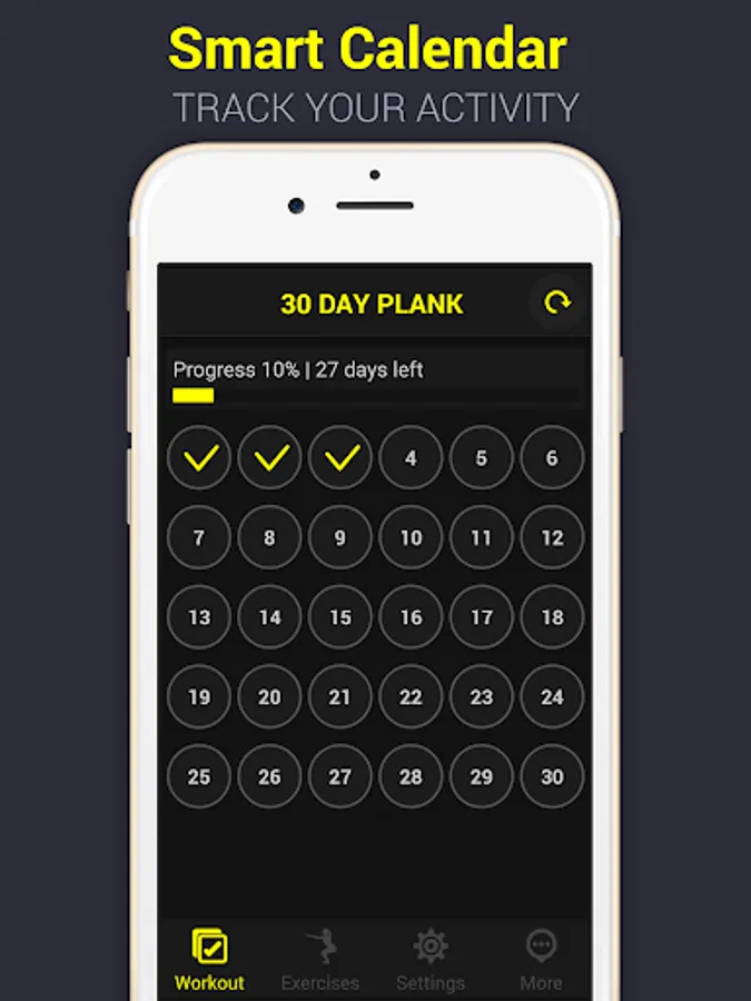 The 30 day plank challenge only has 1 exercise which you have to do each day, and the time spent doing the exercise slowly increases day by day to help you build up your core body muscle strength gradually, ensuring you are able to complete the final day of the challenge easily.