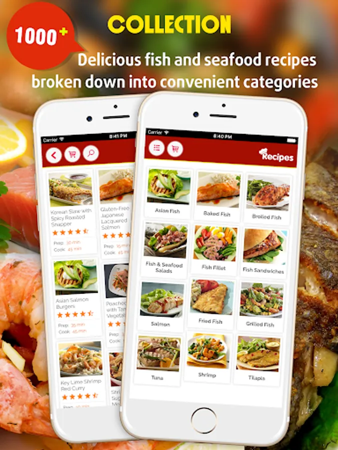 All recipes are presented in the application with more detail about ingredients and directions. This app makes for an easy, yet healthy way to cook for two or more people. With this robust and enlightening Fish Recipes App, Not only will you find over 1000+ delicious fish and seafood recipes, but you'll also find many recipes broken down into convenient categories according to they type of dish it is.