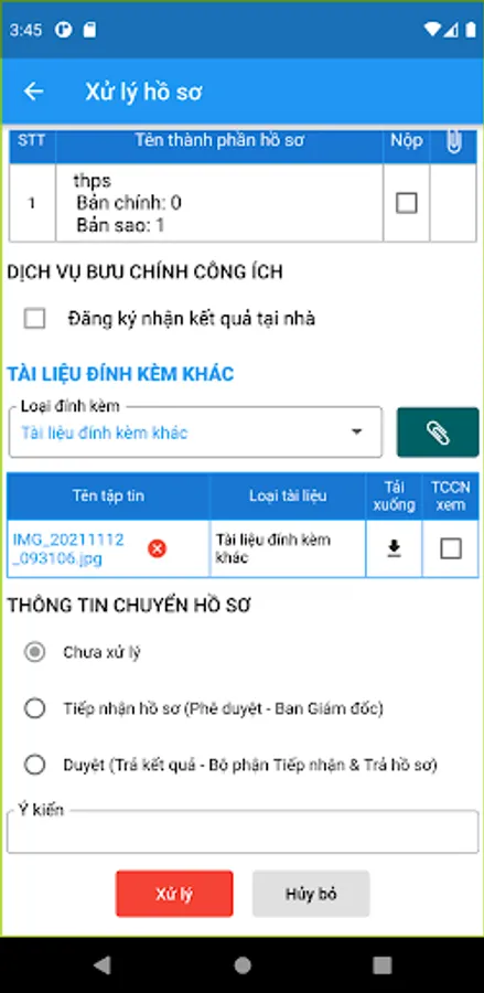 Soc Trang province's electronic one-stop app system provides functions to help officials receive and process records on their phones.