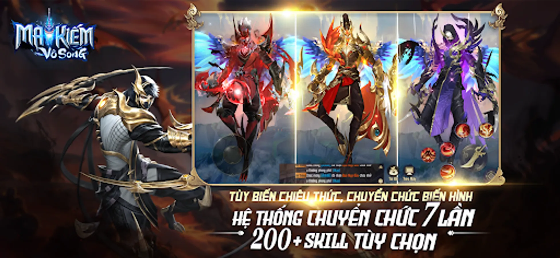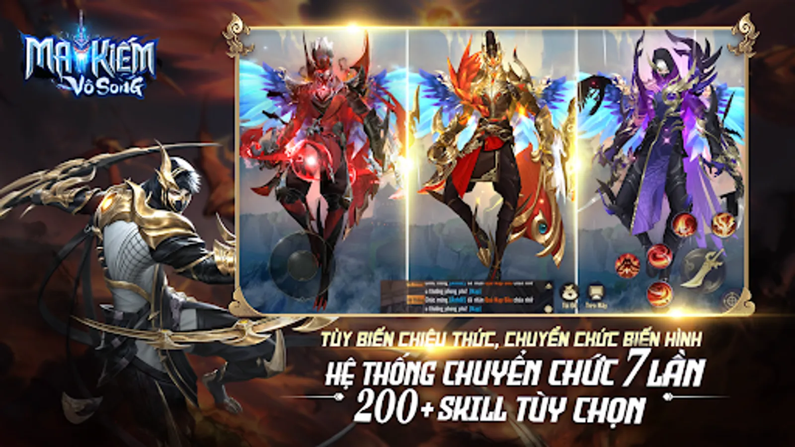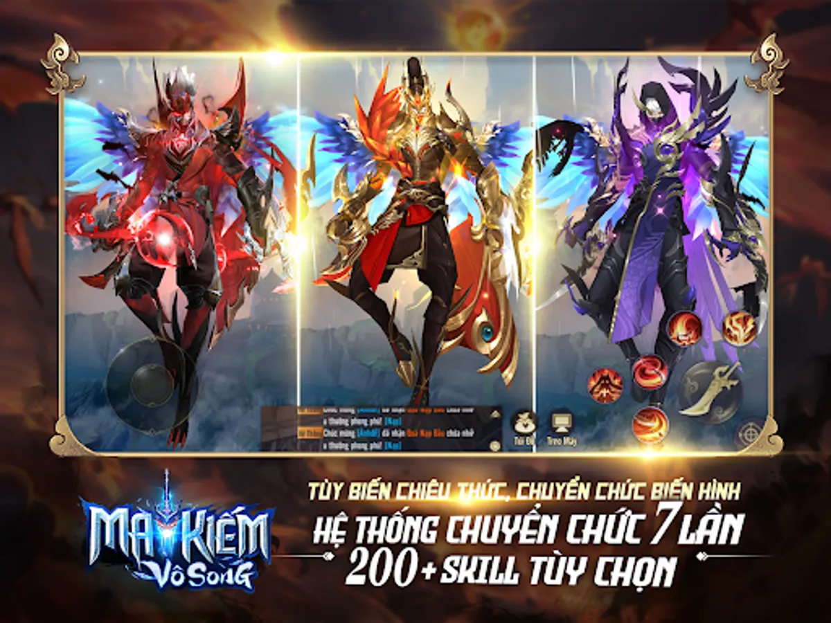 - Từ 4 lớp nhân vật cơ bản, trải qua 7 lần chuyển chức tạo nên 28 trường phái nhân vật hoàn toàn khác biệt. Bộ kỹ năng chủ động và bị động lên tới hơn 200 chiêu thức thỏa sức lựa chọn, tự build bảng kỹ năng riêng.