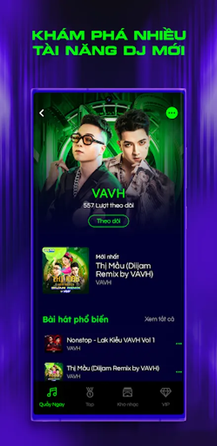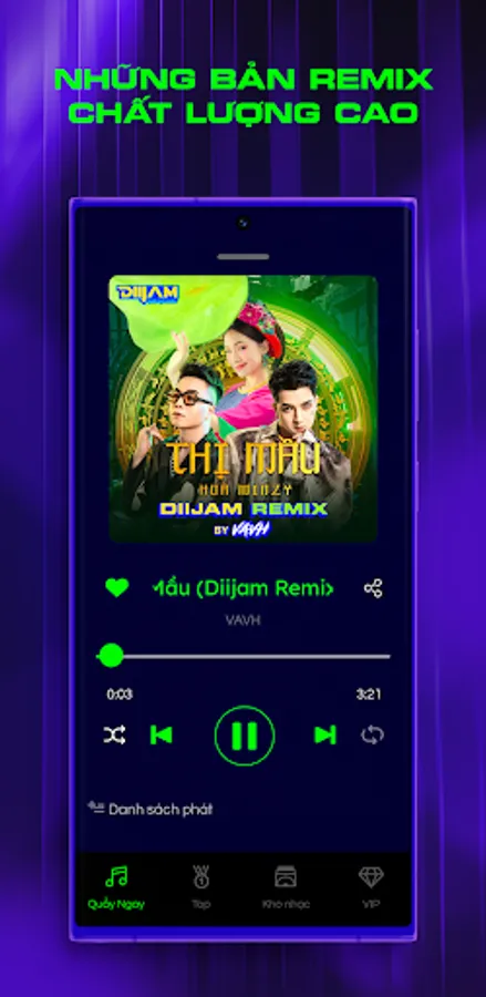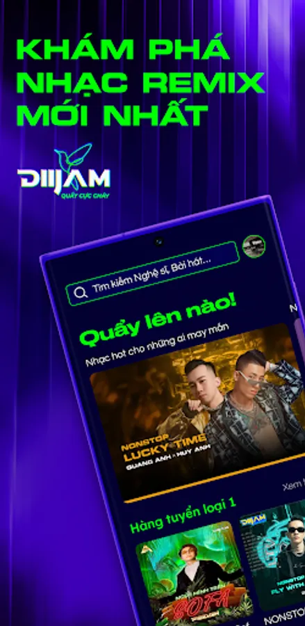 Diijam is a Vietnamese electronic music app for everyone who loves electronic music. Now you can listen to your favorite songs online for free anytime, anywhere. Diijam has all kinds of electronic music you love and especially the Vinahouse series of Vietnamese people.