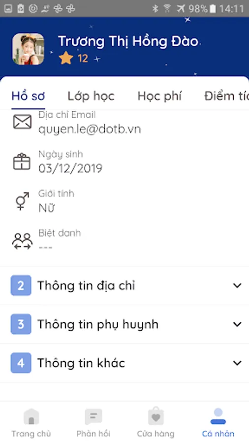 8. UPDATE PERSONAL INFORMATION: Manage viewing, deleting, editing personal information, parents, addresses, qualifications, etc. right on the application without having to go through direct communication to the center.