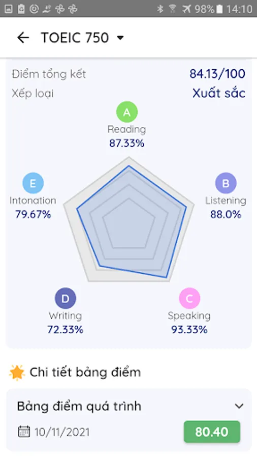 7. VIEW SCORE TABLE – The gradebook of the class is visualized through a chart showing an overview of the corresponding skills by course as well as the details of each score, comment, and evaluation of the teacher in a personalized way.