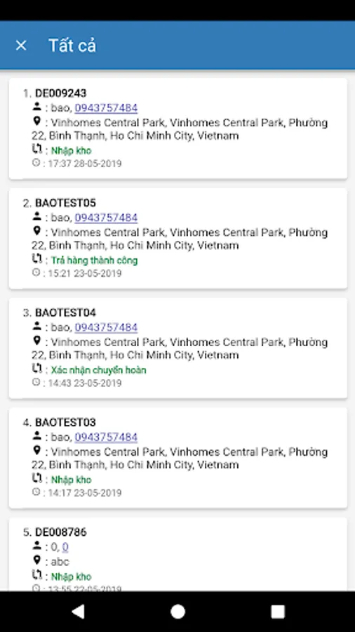 Ứng dụng gửi hàng - Kiểm tra đơn hàng