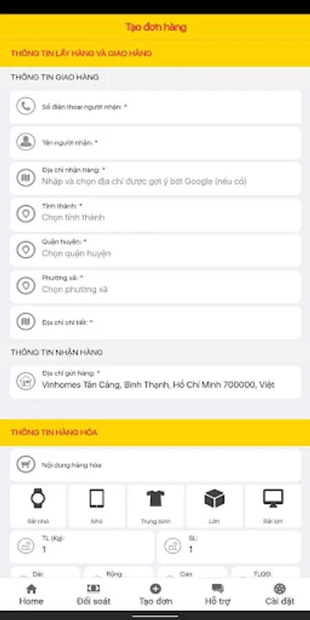 Phần mềm chuyển phát nhanh dành cho khách hàng