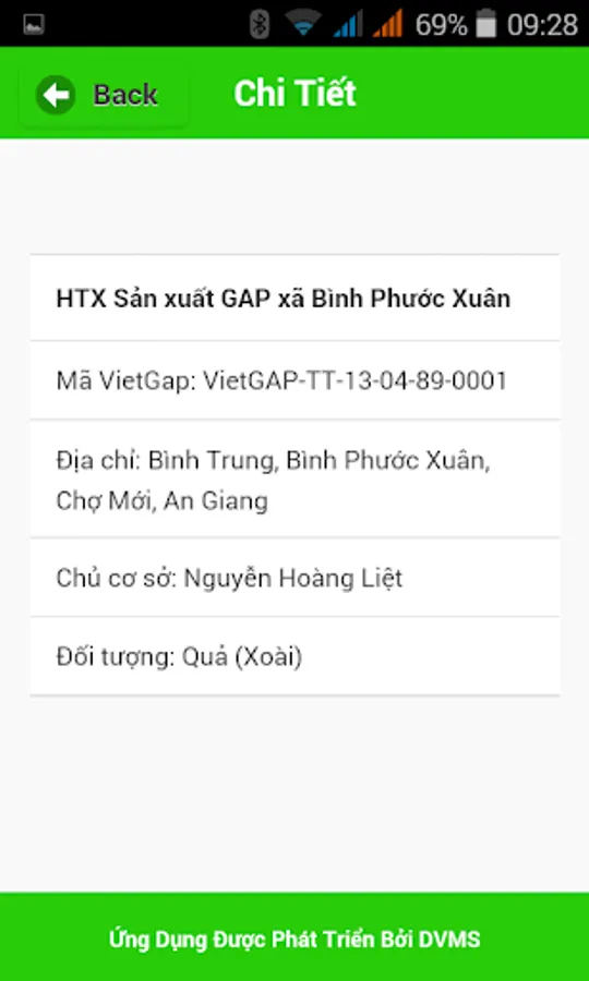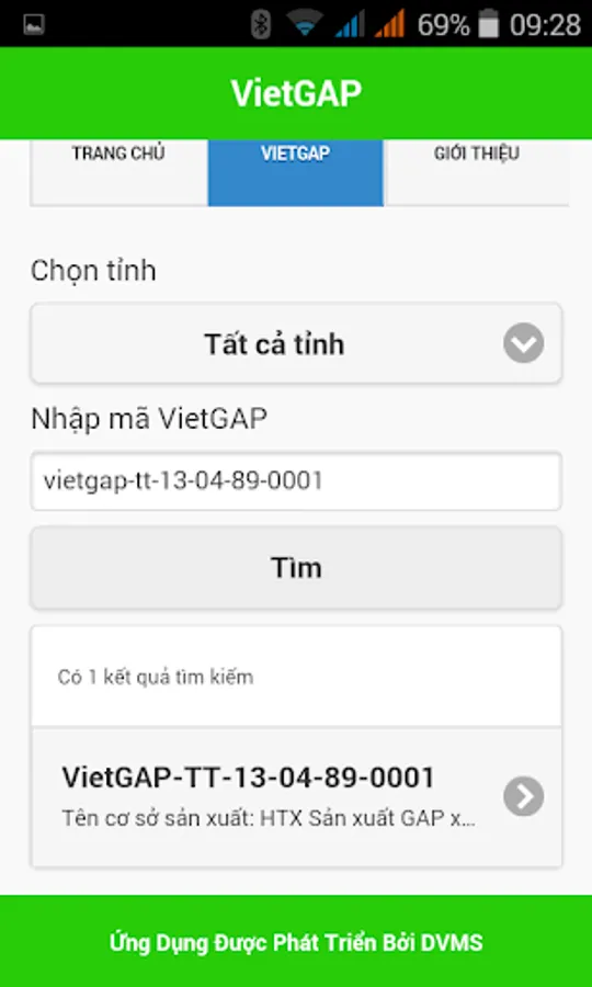 Application on the smartphone, allowing you to look up information about the origin of food VietGAP.