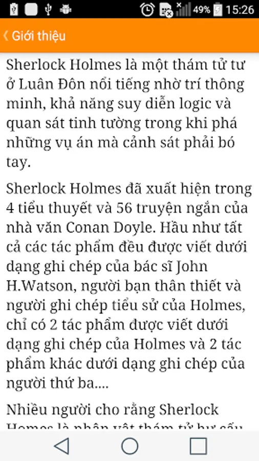 Sherlock Holmes appeared in four novels and 56 short stories by writer Conan Doyle. Almost all the works were written in the form of physician notes John H.Watson, close friend and scribe biography of Holmes, only two works were written in the form of notes of Holmes and 2 other works in the form of a third person notes ....