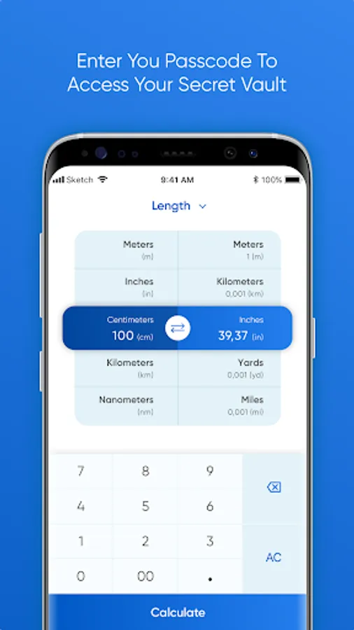 - In first screen: Users use screen to Input password. Besides, Users can convert unit, example: length, weight, temperature and volume