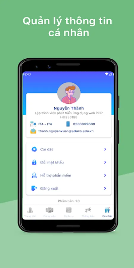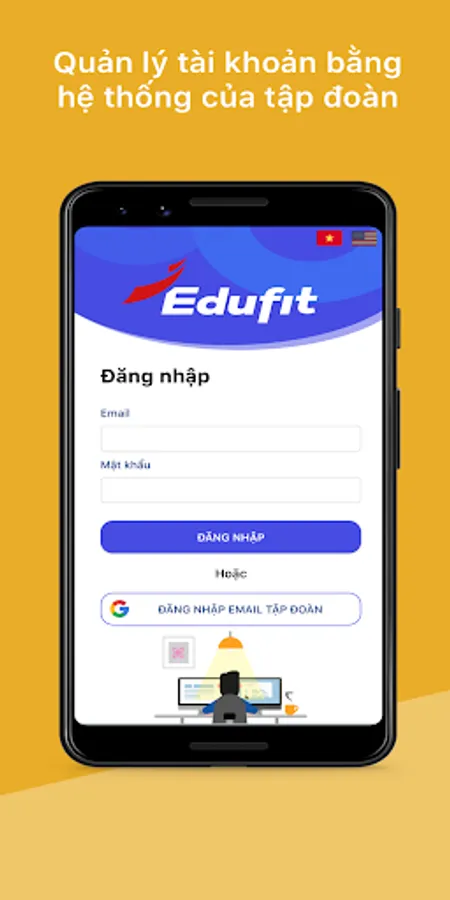 The system includes Edufit Center mobile version and portal https://center.edufit.vn. All teachers and staff will use the account or internal email to log into the system.