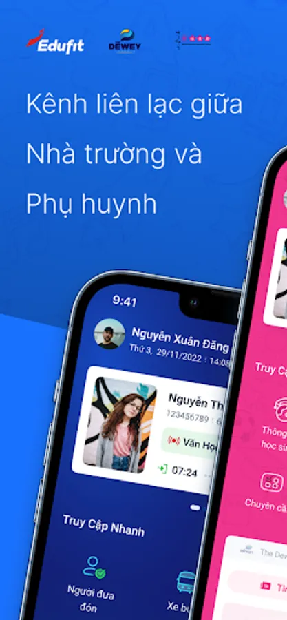 Edufit SSM mobile application of Edufit Education Group Joint Stock Company is used to manage students' activities and is an official communication channel between the school and students' parents. The Edufit SSM app provides Student Information at School to Parents. The application supports the personalization of information and experience to each Parent of Student.