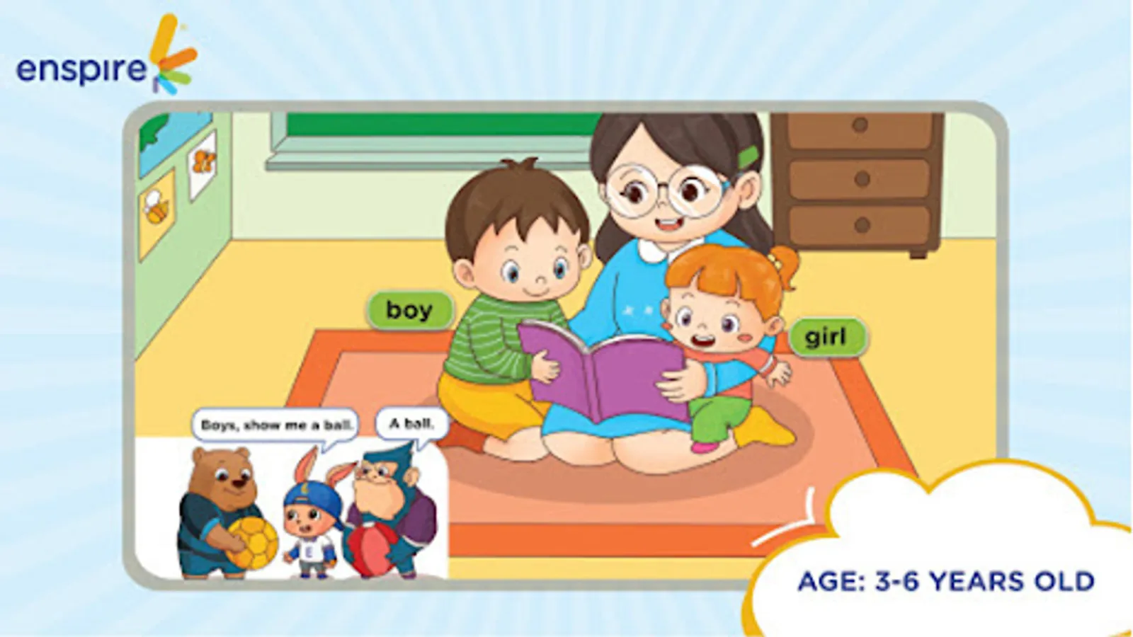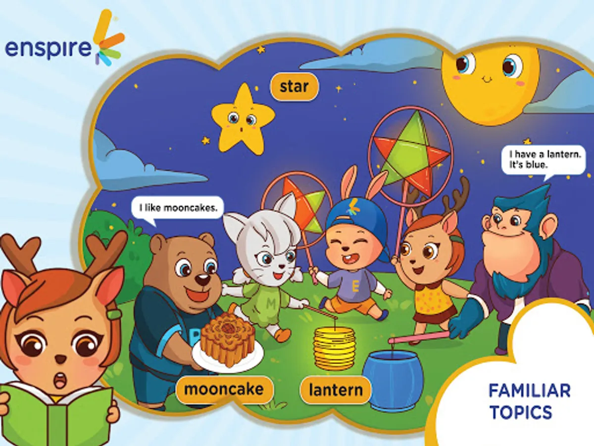 Enspire Start is a system of electronic English books for preschool children (3-6 years old) which provide a natural and fun experience to become familiar with English. Through Enspire Start, children are focused on developing English language and skills such as vocabulary, pronunciation and conversations around familiar topics.