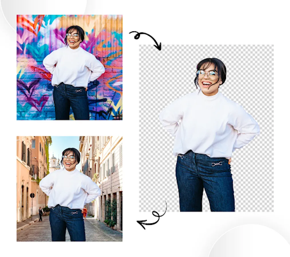 With Remove BG - Remove Background from Photos Auto you can easily remove background from your photos & save the transparent image in Png or Jpg format! The resulting images can be used as stamps with other apps to make a photo-montage, collage or with beautiful Background