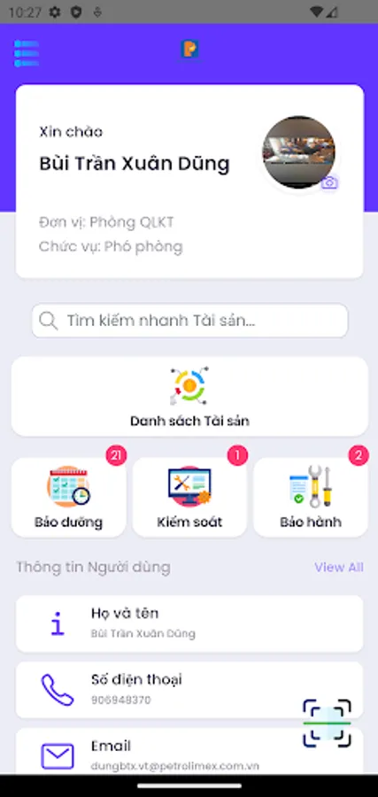 Digitization tool for centralized management of all operations and related repair logs of Petrolimex's assets, equipment, tools and tools