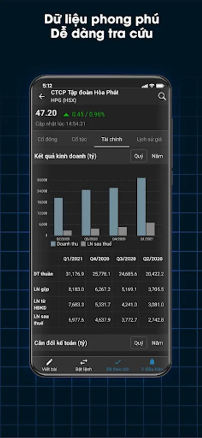 FireAnt Mobile is the best information tracking and financial investment support software on the phone today. The software allows users to update the latest information on the financial market, securities, track interested stocks, in-depth statistics, news... The software also provides many tools. allows investors to analyze and search for investment opportunities in the market.