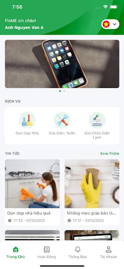 FixME is the first company of Vietnamese to apply technology to connect customers' needs for housework and electrical repair with FixME's partner. The application allows users (customers) to connect more easily with dedicated professional housemaids and electricians from FixME. Users choose any service they want, then select a time, date, and location and the system will automatically find the right person for the job (service) you choose. Service prices will be displayed clearly and transparently on the application.
