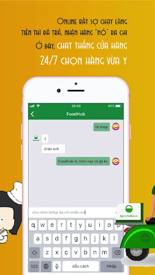 The application allows customers to chat, directly call the store manager - who is in charge of selecting goods for themselves at the supermarket or farm.