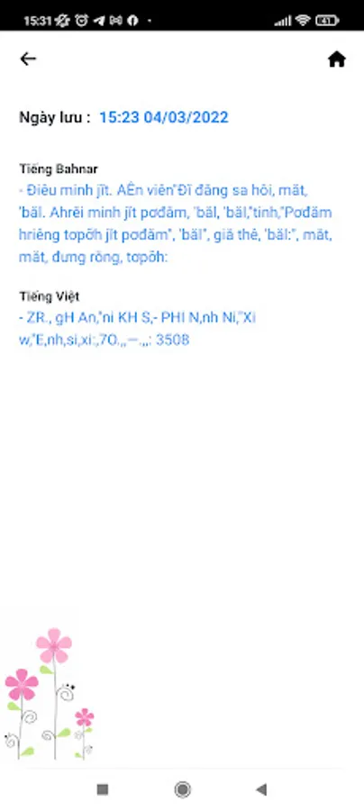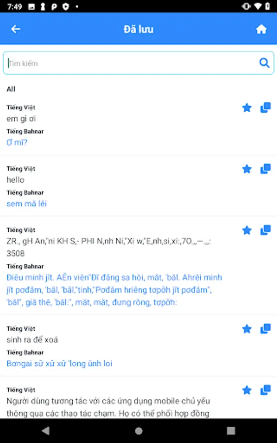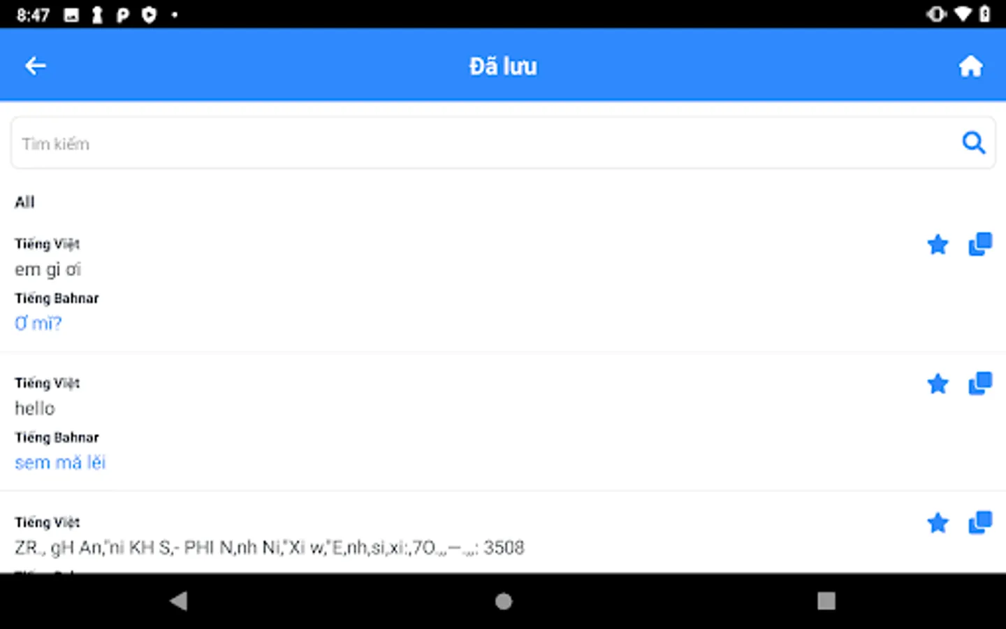 The application supports translation and pronunciation from Vietnamese to Bana and vice versa