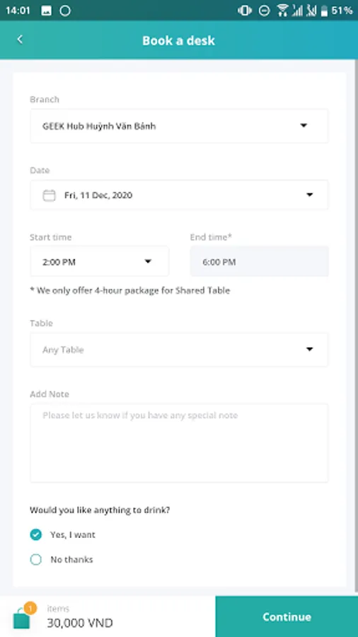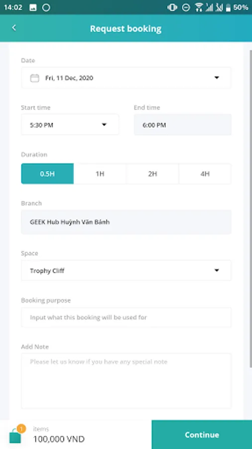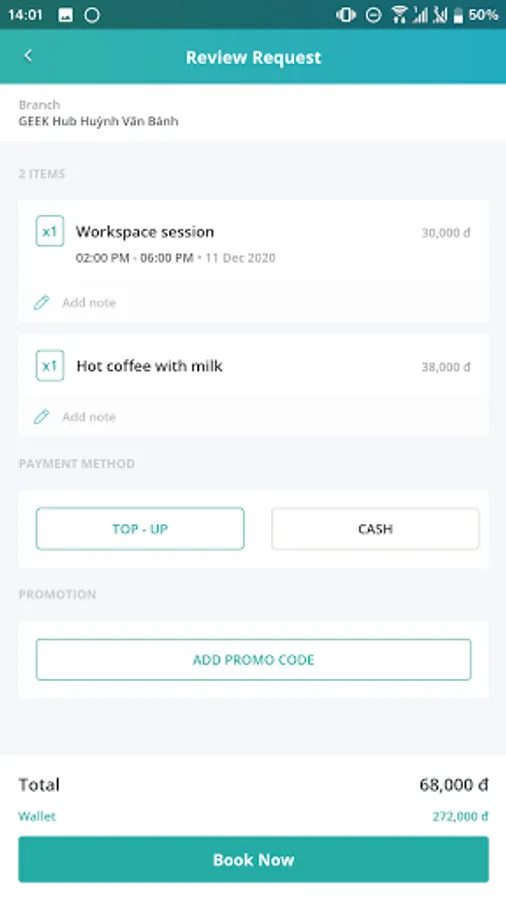 If you want to become our member to use all the additional services (e.g. space booking), please send us your email address information to hello@geekup.vn . A confirmation link will then be sent to your email inbox and you can sign up a new account by yourself.