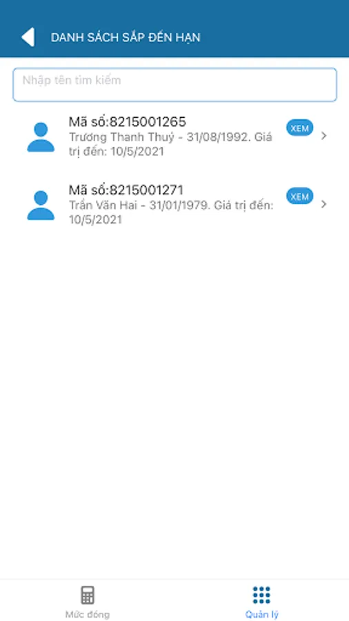 - Participant information management: list of due health insurance cards.