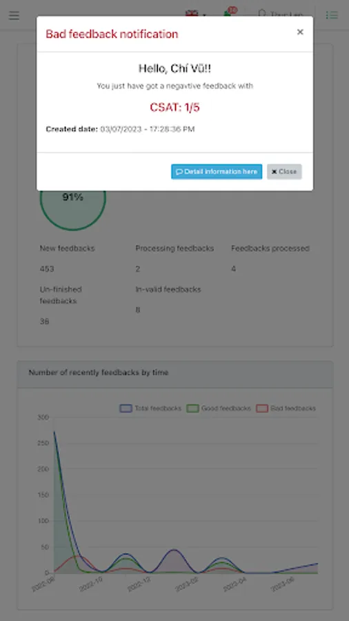 - Customers send feedback: Through the terminal, customers can easily send feedback into the system