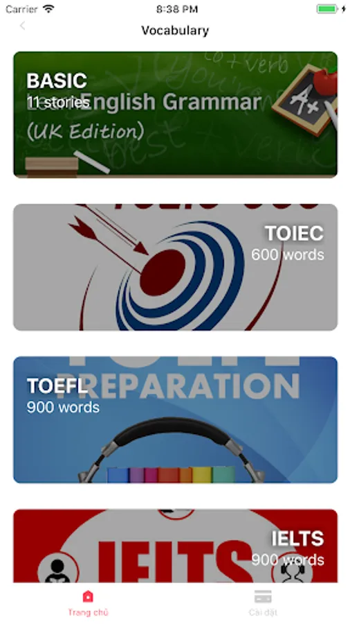 2. Học từ vựng tiếng anh, nhiều bộ từ vựng luyện thi IELTS, TOEFL, TOIEC, văn phòng, công sở ...
