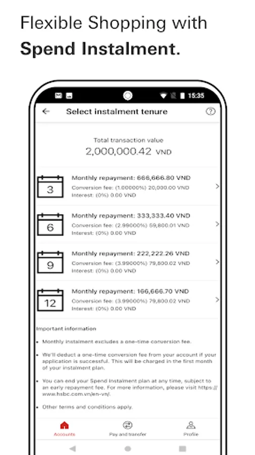 • Enjoy financial flexibility by converting your expenses into monthly instalment